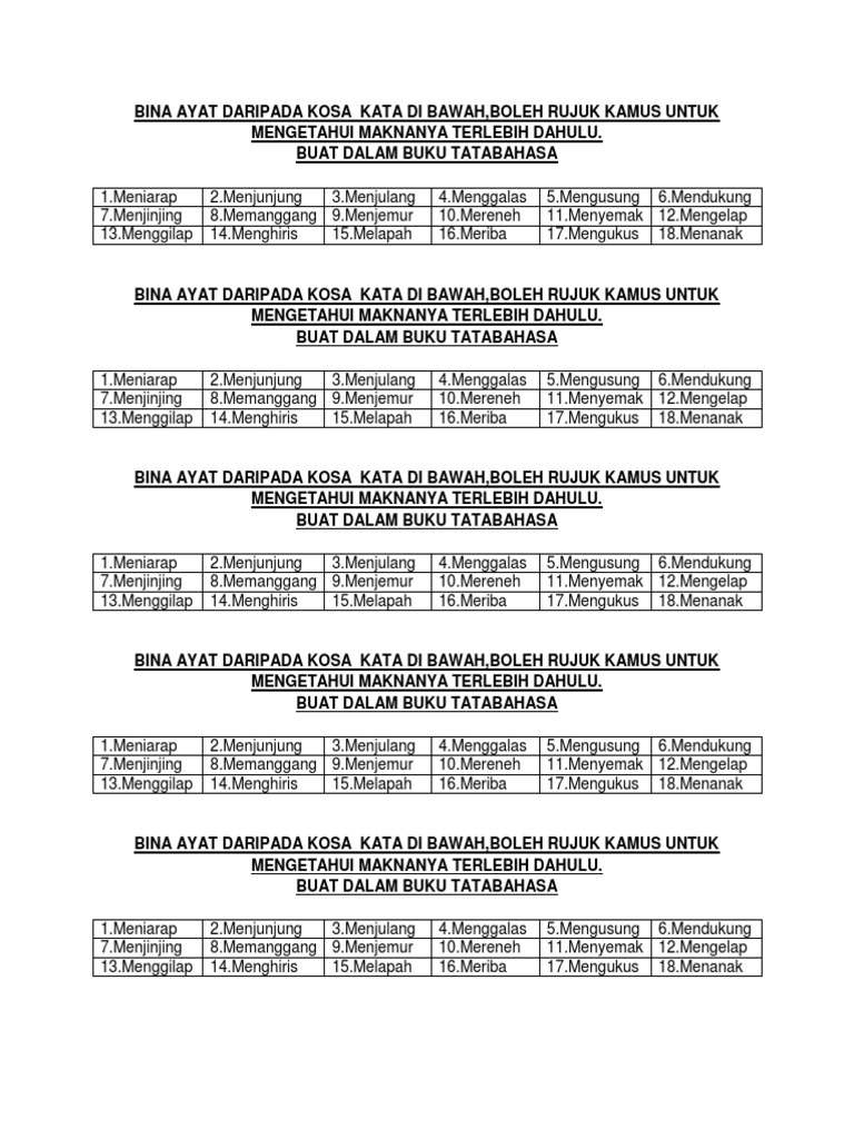Dunia Pendidikan Kosa Kata Bm Penulisan Bahagian A Bina 5 Ayat